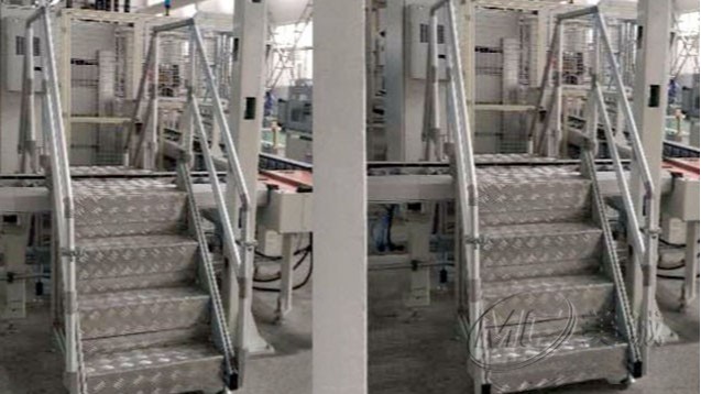 工業鋁型材過線梯-過線梯由專用工業鋁型材作為框架,其需求根據客戶制定進行免費設計、切割加工,配件連接而組成,其中塔臺部分運用了防滑鋁板,可以起到很好的保護作用,底部使用金屬蹄角做支撐,扶手為圓管鋁合金。