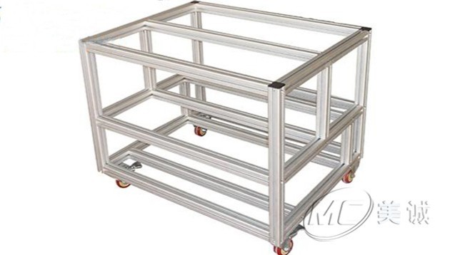 這是一款簡易鋁型材推車,根據客戶需求量身定制,美誠鋁業可按需定制車間物料車,工具車,配送工具車,工具柜等各類生產輔助框架產品,配合企業車間生產,符合人體工學設計,提高工作效率。